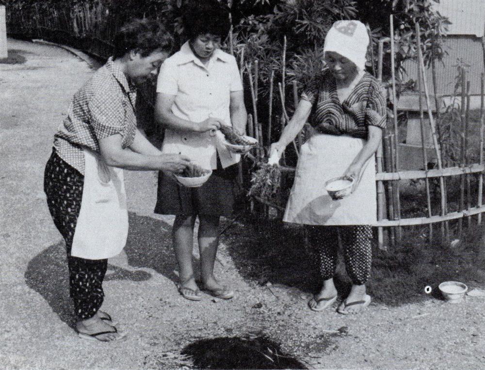君津市 1976 (昭和51) 人見 お盆の迎え火 (ムギワラを焚き ミソハギで消す)