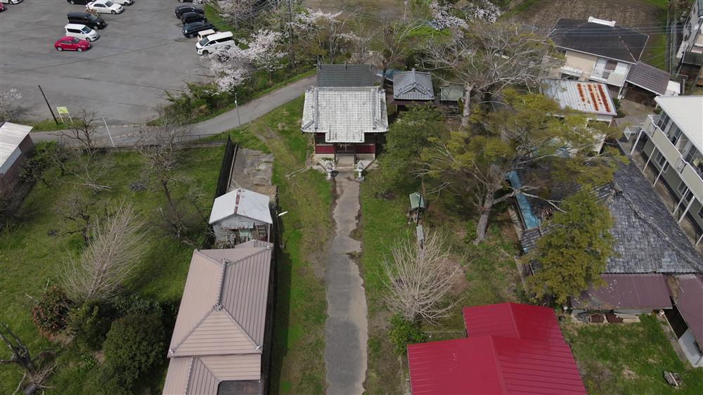 君津市 2021 神明社 (久留里 久留里市場) 空撮 (写真) 鳥居上空から社殿と周辺 02