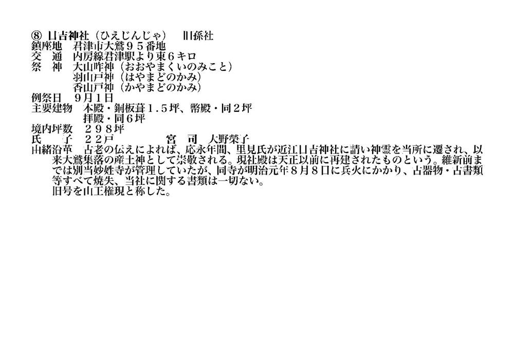 君津市 2022 日吉神社 (旧中村 大鷲) 概要