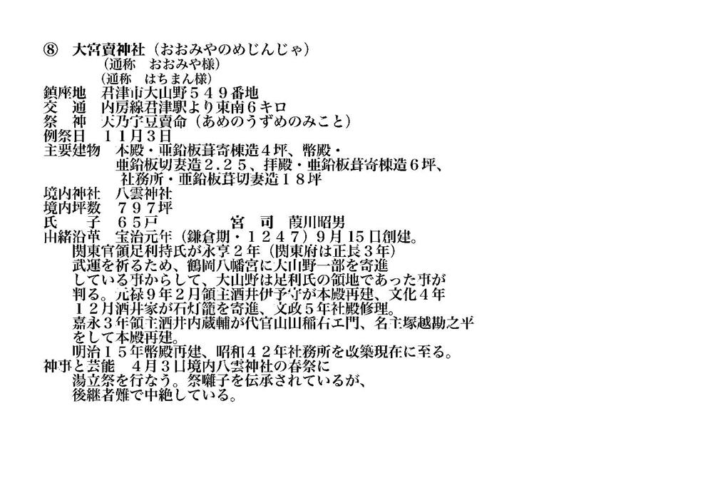 君津市 2022 大宮賣神社 (旧周南村 大山野) おおみやのめ 概要