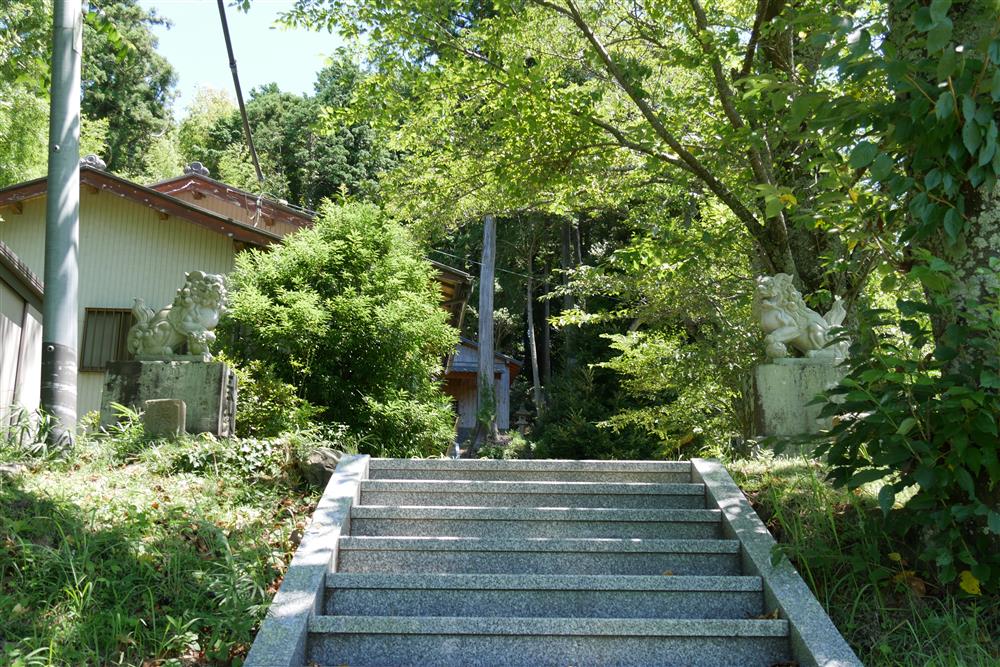 君津市 2022 大宮賣神社 (大山野) 鳥居後の石段 狛犬