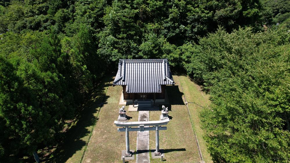 君津市 2022 作木神社 (旧周南村 作木) 空撮 神社正面 03