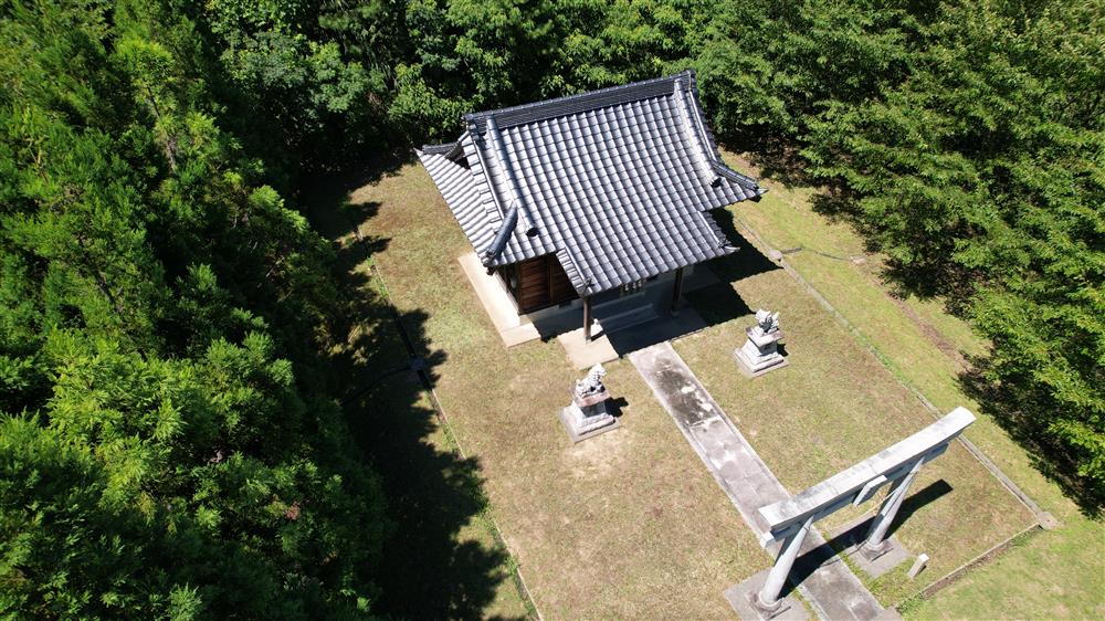 君津市 2022 作木神社 (旧周南村 作木) 空撮 神社 鳥居手前下手より 01