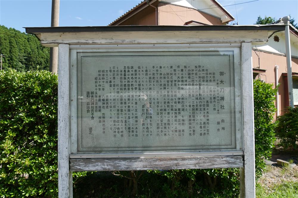 君津市 2022 御太刀神社 (皿引) 由緒の立札