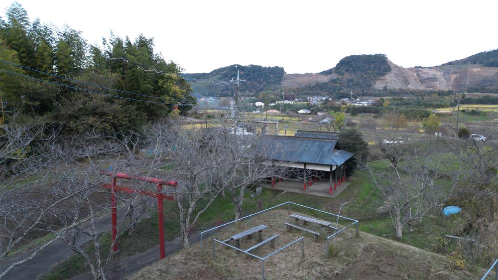 君津市 2022 厳島神社 (秋元 市宿) 空撮 鳥居手前上手上空から神社
