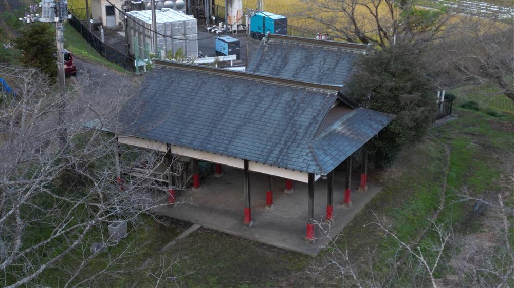 君津市 2022 厳島神社 (秋元 市宿) 空撮 社殿上手上空から社殿