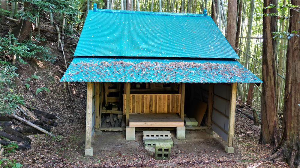 君津市 2022 白山神社 (旧小糸村 根本) 空撮 社殿 正面上空より