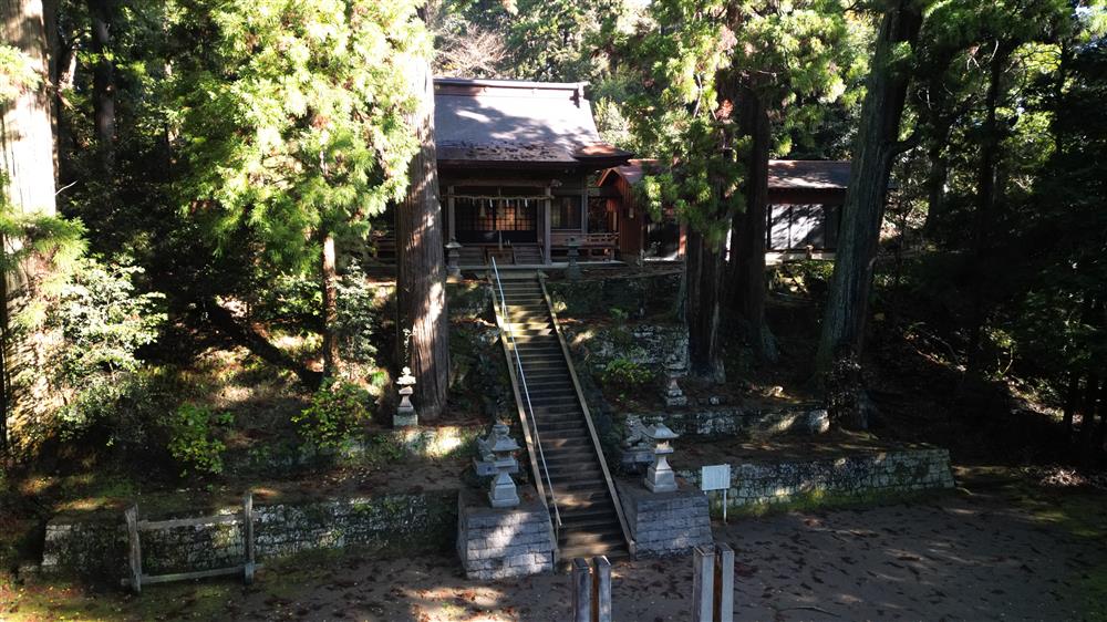 君津市 2022 三島神社 (三島 宿原) 空撮 境内上空から神社