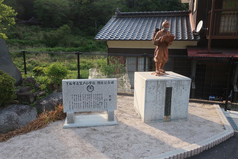 下松市 2023 笠戸島 本浦 笠戸公民館 08 小学校の閉校記念碑・二宮金次郎像