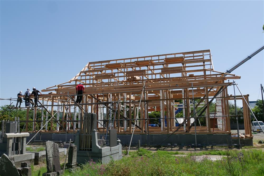 君津市 2024 富西寺 本堂新築 仏式 上棟式 本堂 全景 裏側