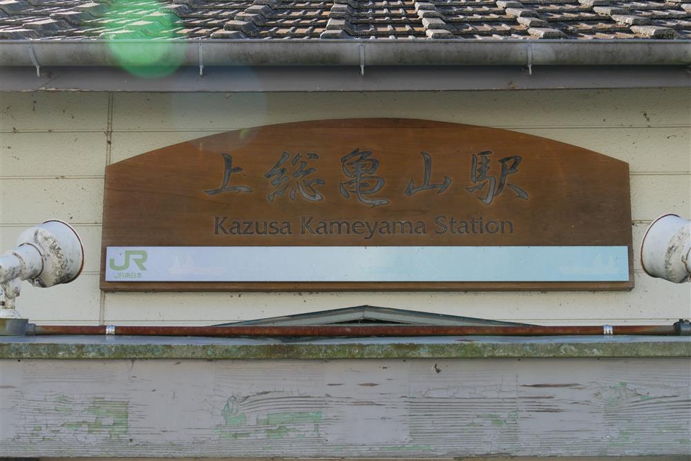 君津市 2024 久留里線 上総亀山駅 駅舎 看板